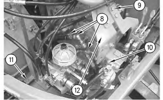 1. Disconnect three hose assemblies (8) from the right side of the control valve.