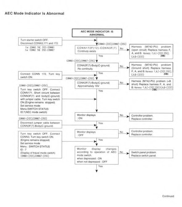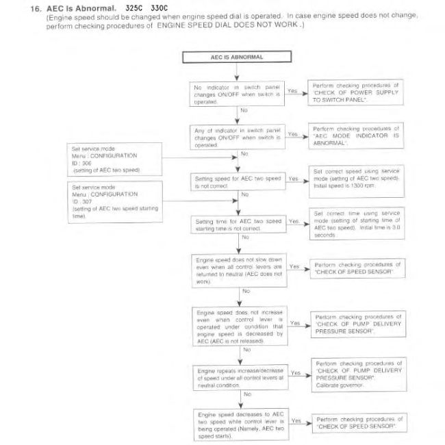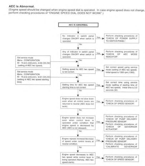 312C, 315C, 318C, 319C, 320C, 321C, 322C, 325C, 330C and M325C Excavators and 325C MHPU and 330C MHPU Mobile Hydraulic Power Units Engine and Pump Control – V2 – AEC Is Abnormal – Troubleshoot
