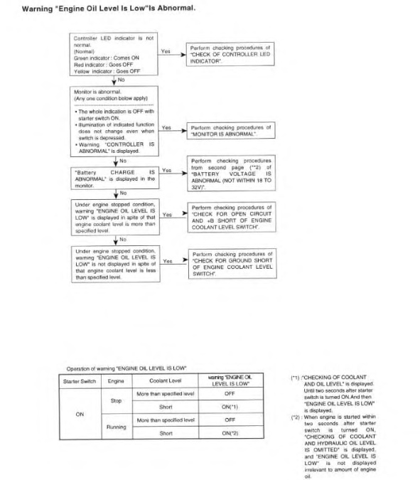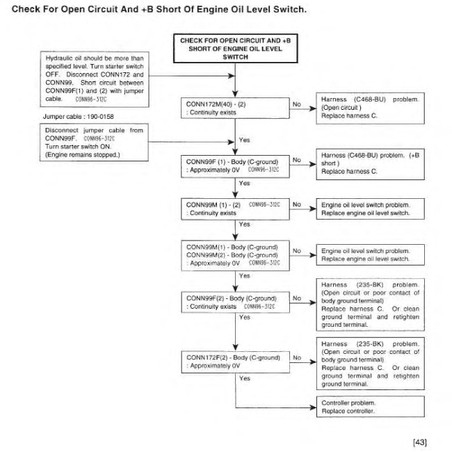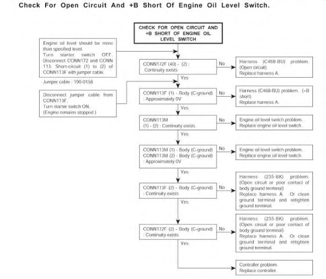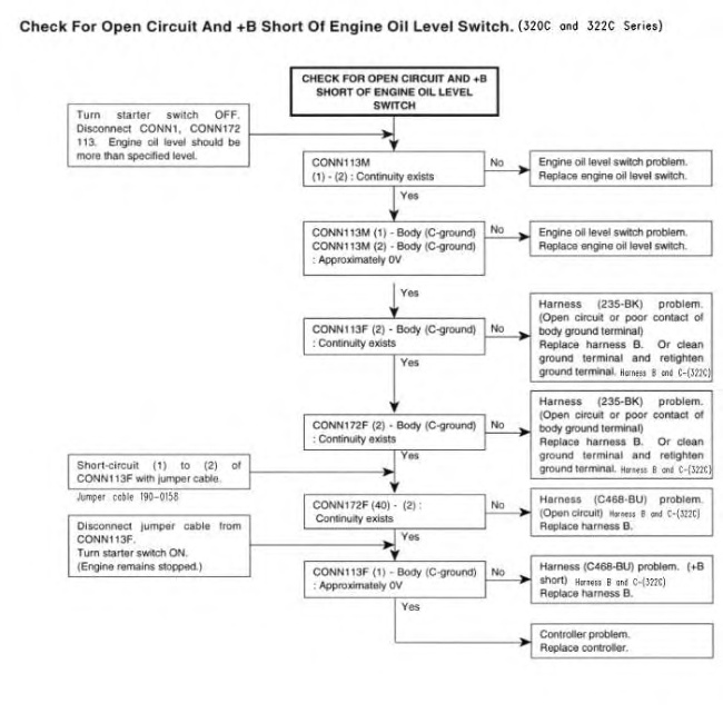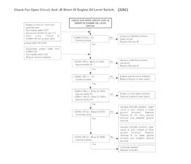 “Check For Open Circuit And +B Short Of Engine Oil Level Switch” ( 318C, 325C, M325C MH, and 330C)