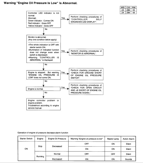 “Warning Engine Oil Pressure Is Low for 325C and M325C MH”