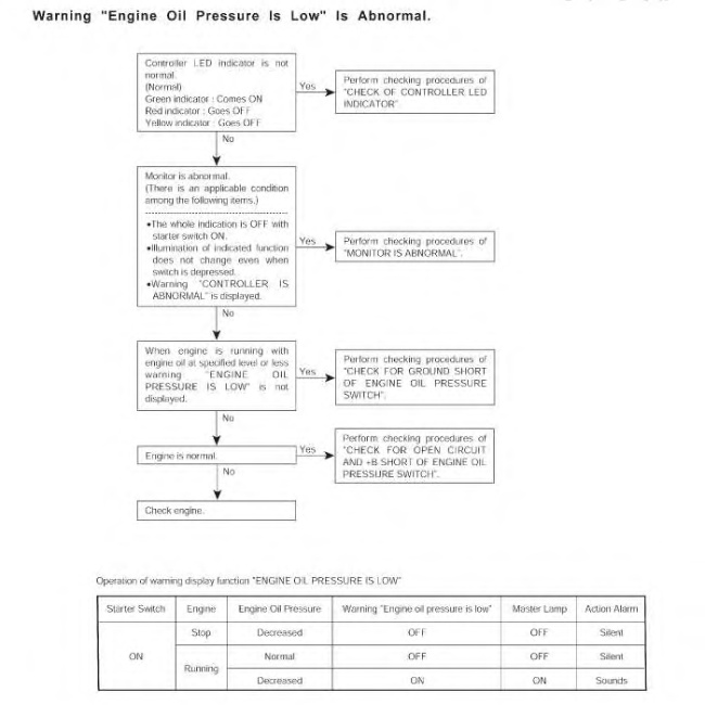 “Warning Engine Oil Pressure Is Low for 312C Through 322C”