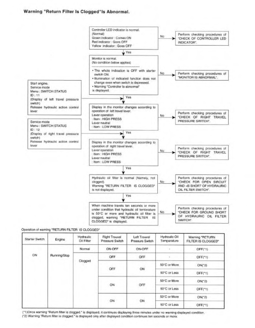 “Warning “Return Filter Is Clogged” Is Abnormal” ( 312C And 315C)