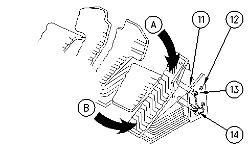 (A) Shear OPEN (B) Shear CLOSE (11) Lock pin (12) ONE-WAY FLOW position (13) LOCKED position (14) TWO-WAY FLOW position |
