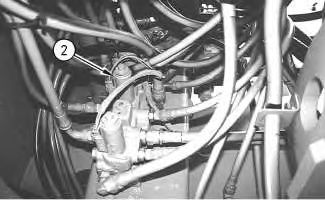 Swing parking brake solenoid valve (2) is located on the pilot oil manifold. When any one of the joysticks is moved from the NEUTRAL position, the swing parking brake solenoid valve is energized in order to release the swing parking brake. When the swing parking brake solenoid valve is energized, pilot oil flows to the swing motor in order to release the swing parking brake.