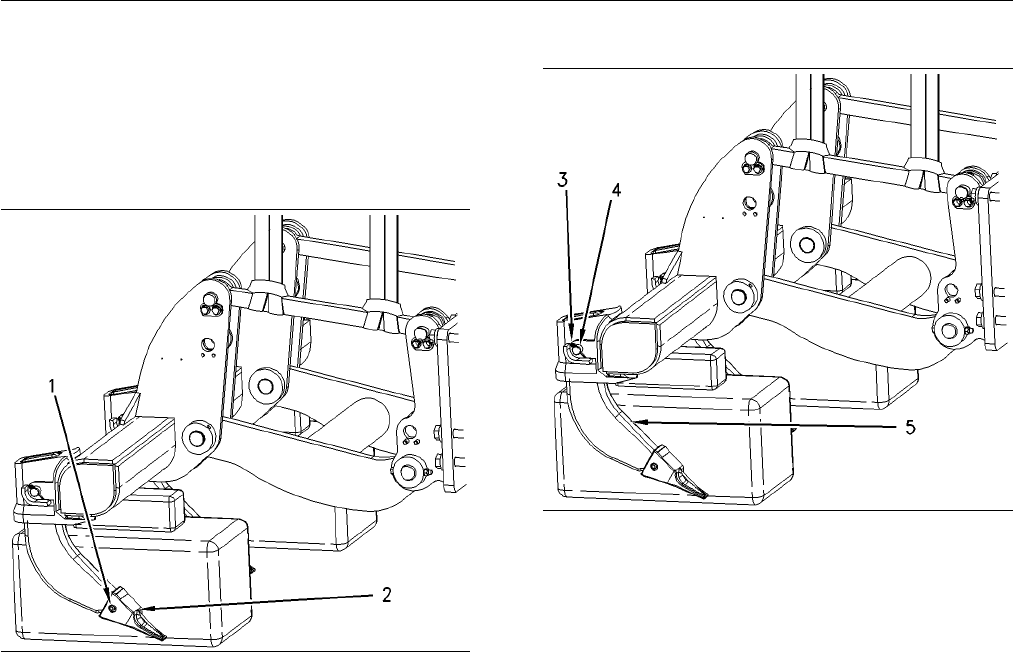 2. If the ripper tip is worn, drive out pin (1). Remove
