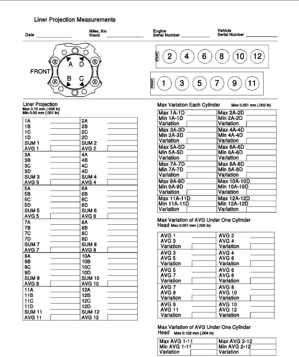• Page 55RENR9968-02 55 Testing and Adjusting Section The 8T-0455 Liner Projection Tool Group can be used to check the liner projection. Refer to Special Instruction, “Use of the 8T-0455 Liner Projection Tool Group” for more information on the use of the tool. g01388332 Illustration 46 Liner Projection Compo