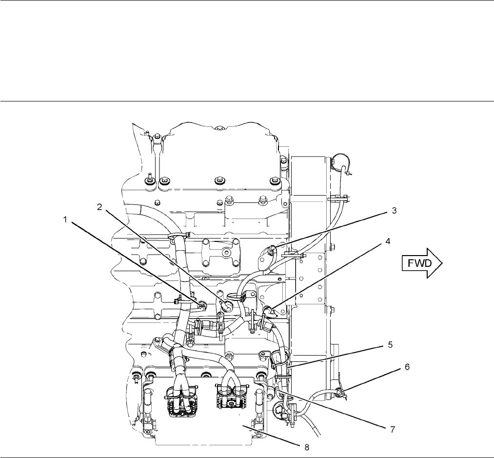 • Page 44 RENR9968-02 Systems Operation Section Systems Operation Section i02411347 General Information SMCS Code: 1000 g01205382 Illustration 1 Typical example (1) Electronic Control Module (ECM) (5) Engine oil filters (8) Flywheel housing (2) Turbocharger (6) Secondary fuel filter and fuel priming (3) Pri