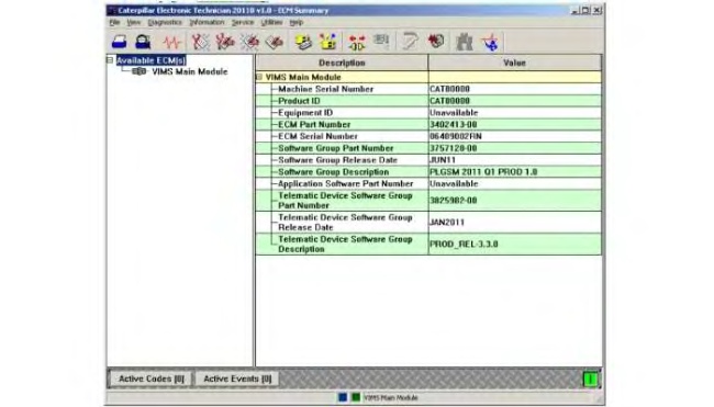 - The PL523 device is listed as “Vital Information Management System (VIMS) Main Module” as the Cat Data Link connection is made with the gateway board within the device. Select “VIMS Main Module”or “Product Link” from the list of available ECMs. Refer to Illustration 1.